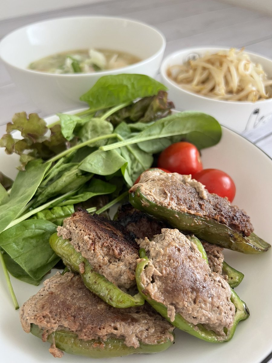 皆さんおはようございます😃サムネはガパオライスでございます😁🎇昨日、cookpadLiveにて推し様と一緒に作ったのがガパオライスでした☺️✨朝ごはんもガパオライス😌✨下にある、ピーマンの肉詰め...