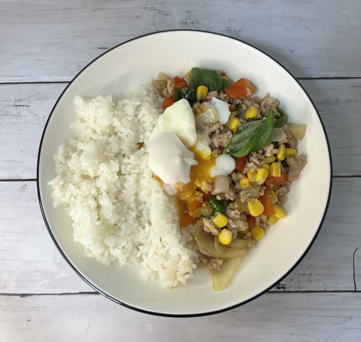 ガパオと肉詰めと豚汁☺️🌸7/21
